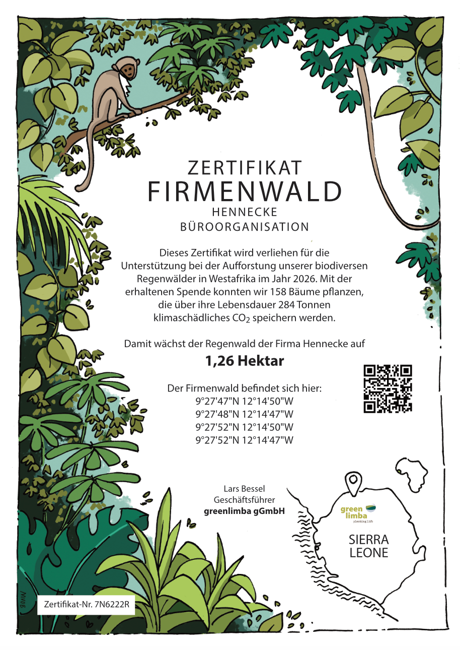 ZertifikatJahrgepflanzte BäumeCO2-KompensationGPS-DatenFirmenwaldfläche